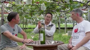 Sébastien Martin et son ami François Audrin, chef cuisinier, parcourent la préfecture de Kochi au Japon, où ils visitent des fermes et des vignobles locaux.
